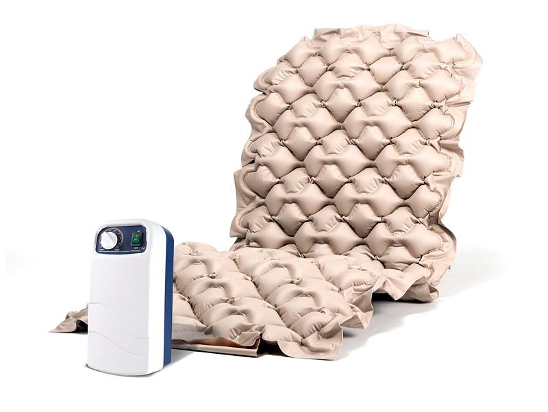 Materac przeciwodleżynowy pneumatyczny zmiennociśnieniowy, bąbelkowy, pompa z regulacją ciśnienia.